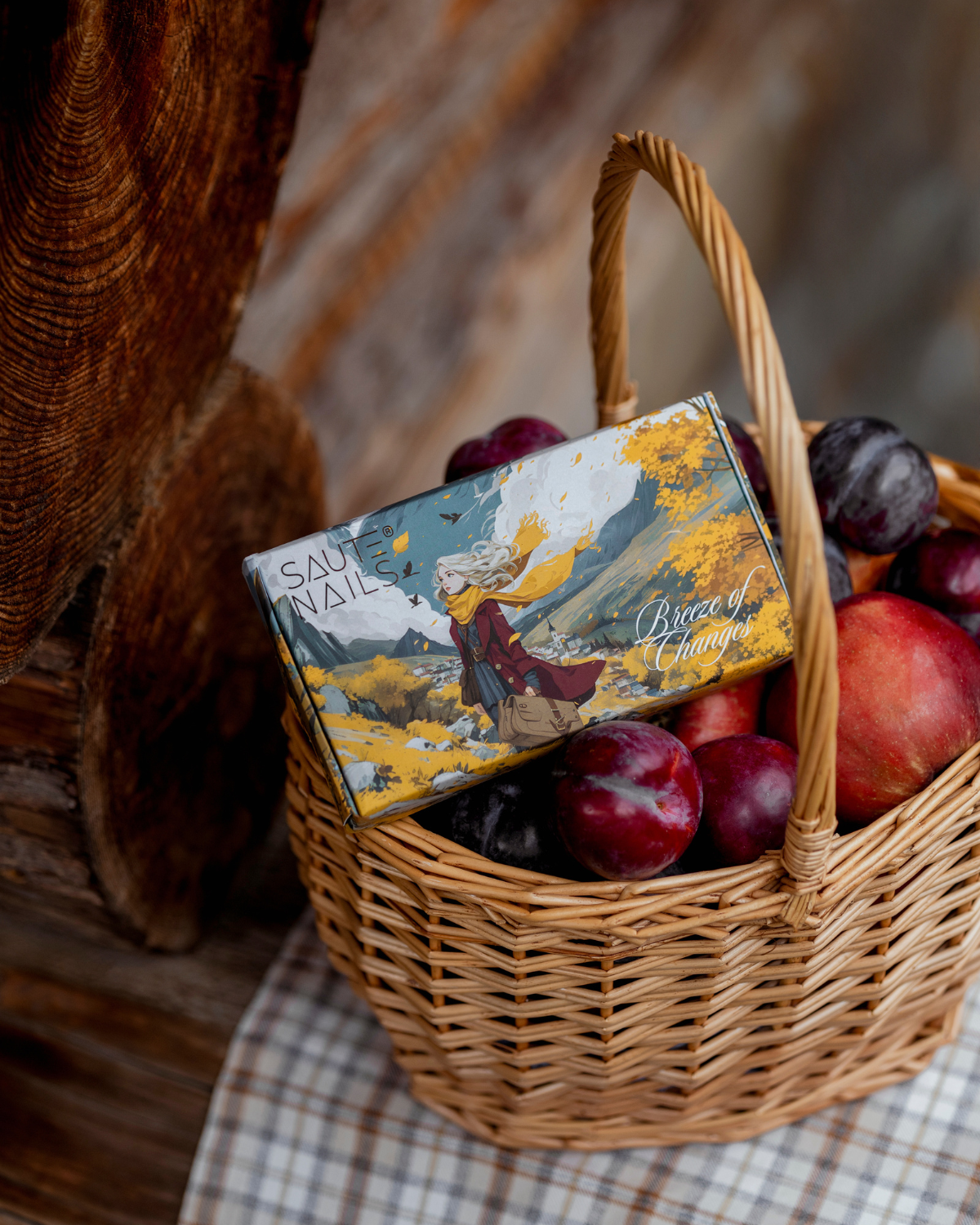 Breeze of Changes to kolekcja sześciu lakierów hybrydowych w jesiennej palecie barw – od eleganckich brązów i głębokich bordowych tonów, przez śliwkowe akcenty, aż po ciepły, wyrazisty odcień żółci i stonowany niebieski. Każdy kolor łączy w sobie klasykę i sezonowy charakter, tworząc spójną, harmonijną całość idealną do jesiennych stylizacji.