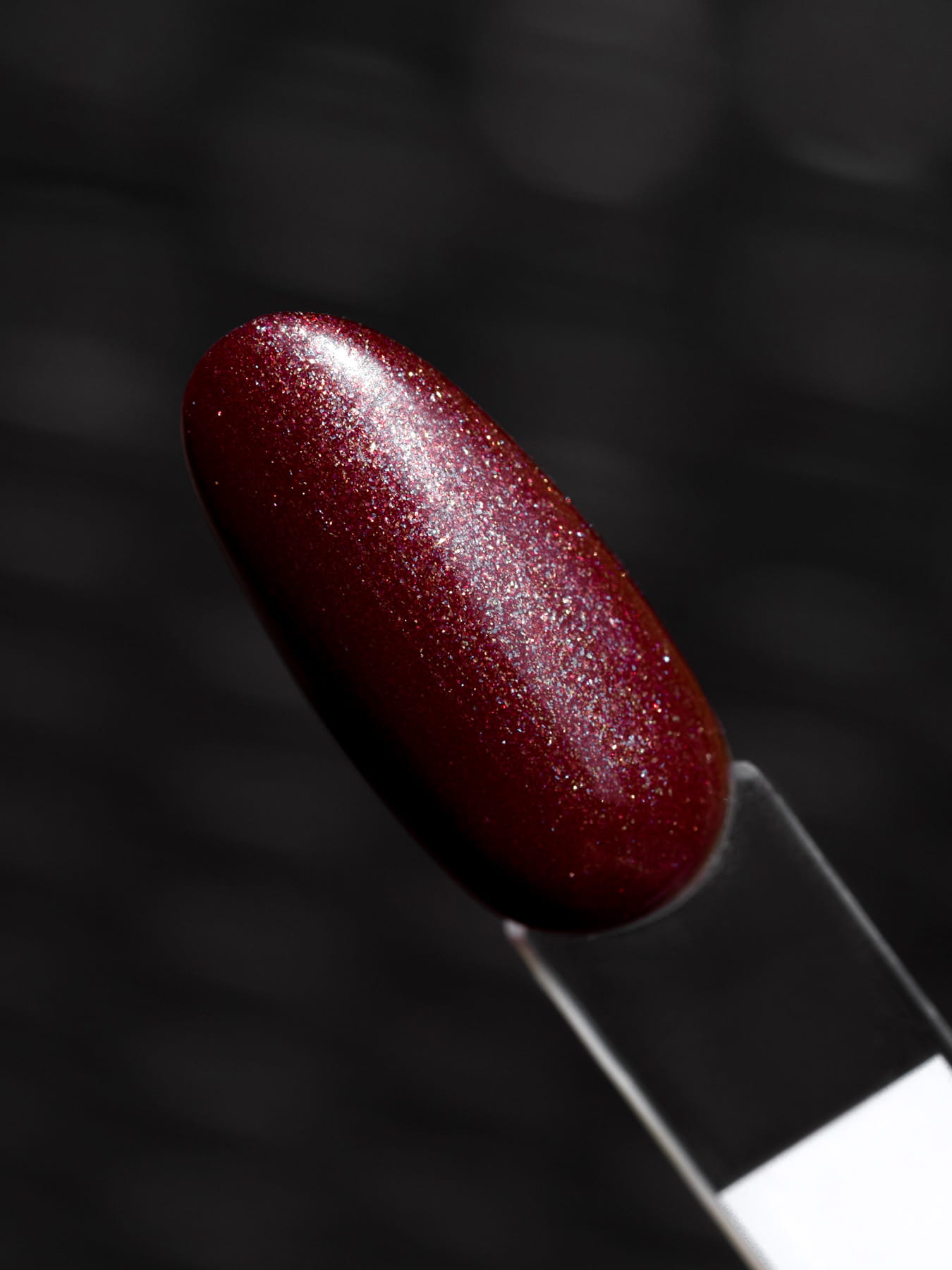 Ciemna, winna czerwień wzbogacona delikatną, iskrzącą drobinką.